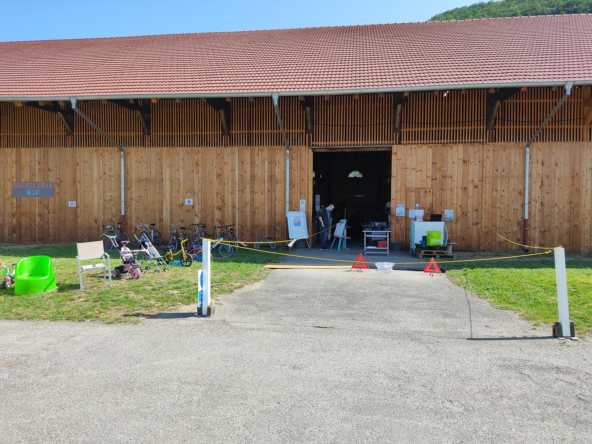Notre local Au sein de la commune de Malmerspach, dans un environnement magnifique, située dans la vallée de la Thur, au pied des Vosges. Notre local prend vie dans un ancien hangar de séchage de laine peignée réhabilité. ---------------- Ouvertures ---------------- hiver du 16/09 au 14/05 : mardi - samedi de 10h à 15h ----------------------------------------------- été du 15/05 au 15/09 : mardi - samedi de 10h à 17h --- Itinéraire Google Maps Nous sommes situés au 2 rue de la Laine Peignée à Malmerspach Vue coté route Vue pont d’accès Vue coté parking Rue Laine Peignée Entrée recyclerie By night Vue intérieure hangar vide